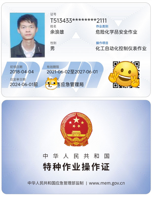 危化品特種作業證:過氧化工藝作業,烷基化工藝作業,氧化工藝作業,加氫工藝作業,化工自動化控制儀表作業。