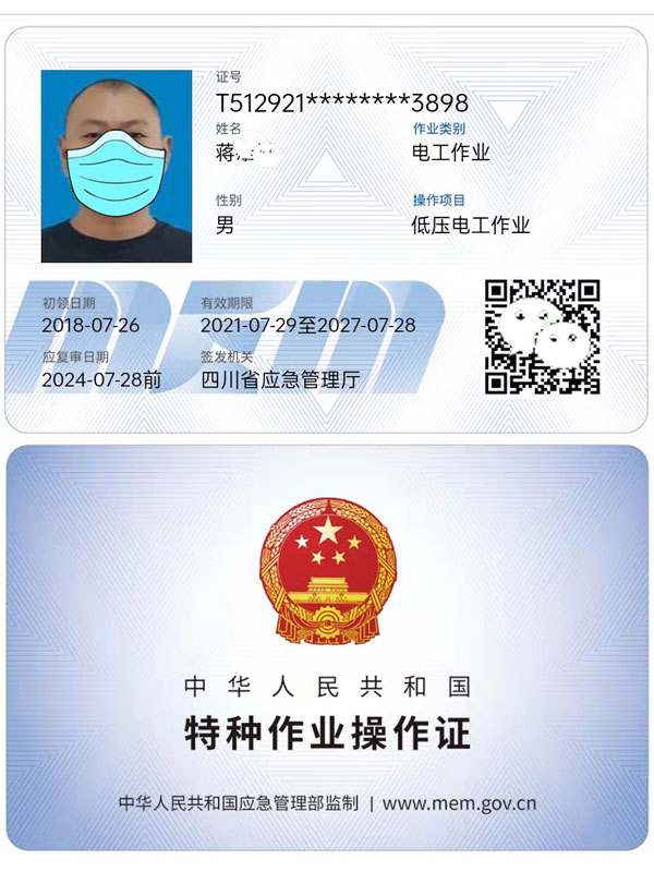 應急廳特種人員操作證,每三年復審一次,建設廳建筑電工證每兩年復審