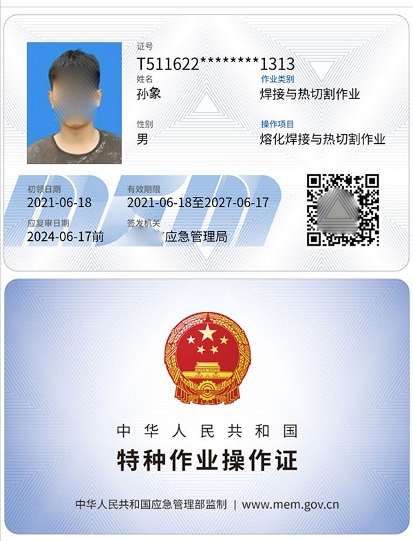 焊工操作證也稱為焊工上崗證,是由各省應(yīng)急管理局,頒發(fā)的,像身份證一樣大小,是IC卡形式的。焊工操作證是焊工作業(yè)必須持有的證件,具有極強(qiáng)的法律效應(yīng),也就是說,如果焊工在某個單位任職,如果遇到相關(guān)部門進(jìn)行安全檢查,一旦查出沒有焊工操作證卻從事相關(guān)工作,不僅會被開除,還要追究單位的責(zé)任,尤其是當(dāng)發(fā)生安全事故時,沒有證書就會處于劣勢。
