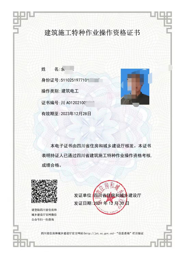 四川省住房和城鄉建設廳特種作業證報名咨詢電話:17313127375(微信同號) 卿老師