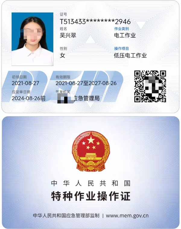 電工證,焊工證,高處作業(yè),登高架設(shè)作業(yè),制冷與空凋設(shè)備運(yùn)行操作作業(yè),制冷與空凋設(shè)備安裝修理作業(yè),電力電纜,繼電保護(hù),電氣試驗(yàn),防爆電氣作業(yè),特種作業(yè)人員必須經(jīng)專門的安全技術(shù)培訓(xùn)并考核合格,取得《中華人民共和國特種作業(yè)操作證》(以下簡稱特種作業(yè)操作證)后,方可上崗作業(yè)。