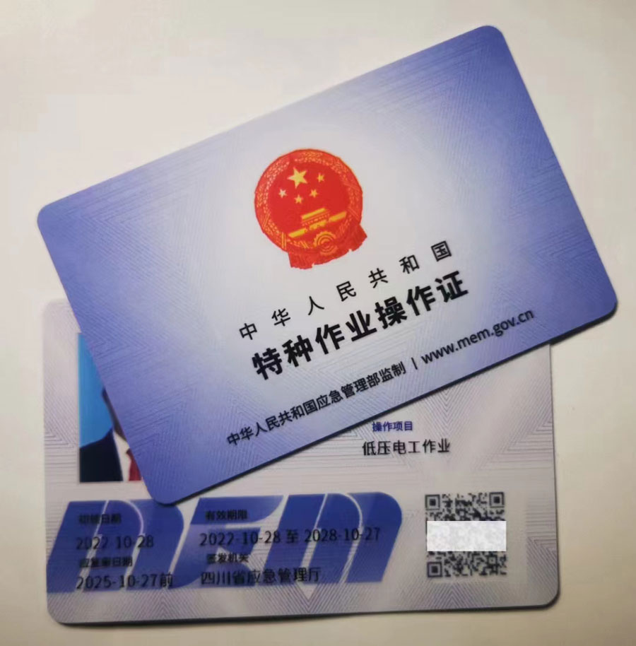 電工證(俗稱操作證、上崗證),分類:高壓運行維護(hù)作業(yè)、高壓安裝修造作業(yè)、低壓電工作業(yè)用于、安裝、維修、發(fā)電、配電, 電工證,焊工證等,高處安裝,登高架設(shè)作業(yè),制冷與空凋設(shè)備運行操作作業(yè),制冷與空凋設(shè)備安裝修理作業(yè),電力電纜,繼電保護(hù),電氣試驗,防爆電氣作業(yè),特種作業(yè)人員必須經(jīng)專門的安全技術(shù)培訓(xùn)并考核合格,取得《中華人民共和國特種作業(yè)操作證》(以下簡稱特種作業(yè)操作證)后,方可上崗作業(yè)。