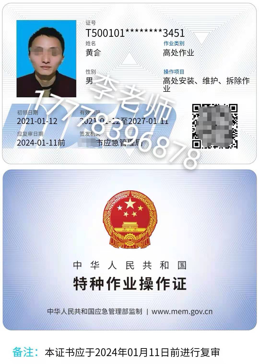 高處安裝,維護,拆除作業(yè)作業(yè)操作證:是由應(yīng)急管理廳(原安監(jiān)局)頒發(fā),是從事登高架設(shè)作業(yè)或高處安裝、維護、拆除作業(yè)工作的人員必須考取的特種作業(yè)操作證。該證是安監(jiān)局頒發(fā)的。登高架設(shè)作業(yè)證:專用設(shè)備進行建筑物內(nèi)外裝飾、清潔、裝修,電力、電信等線路架設(shè),高處管道架設(shè),小型空調(diào)高處安裝、維修,各種設(shè)備設(shè)施與戶外廣告設(shè)施的安裝、檢修、維護以及在高處從事建筑物、設(shè)備設(shè)施拆除作業(yè)的工作。 以下都屬于高處作業(yè),都需要考取高處作業(yè)操作證:指專門或經(jīng)常在墜落高度基準(zhǔn)面2米及以上有可能墜落的高處進行的作業(yè)。指在高處從事腳手架、跨越架架設(shè)或拆除的作業(yè)。高處安裝、維護、拆除作業(yè)。指在高處從事安裝、維護、拆除的作業(yè)。適用于利用專用設(shè)備進行建筑物內(nèi)外裝飾、清潔、裝修,電力、電信等線路架設(shè),高處管道架設(shè),小型空調(diào)高處安裝、維修,各種設(shè)備設(shè)施與戶外廣告設(shè)施的安裝、檢修、維護以及在高處從事建筑物、設(shè)備設(shè)施拆除作業(yè)。